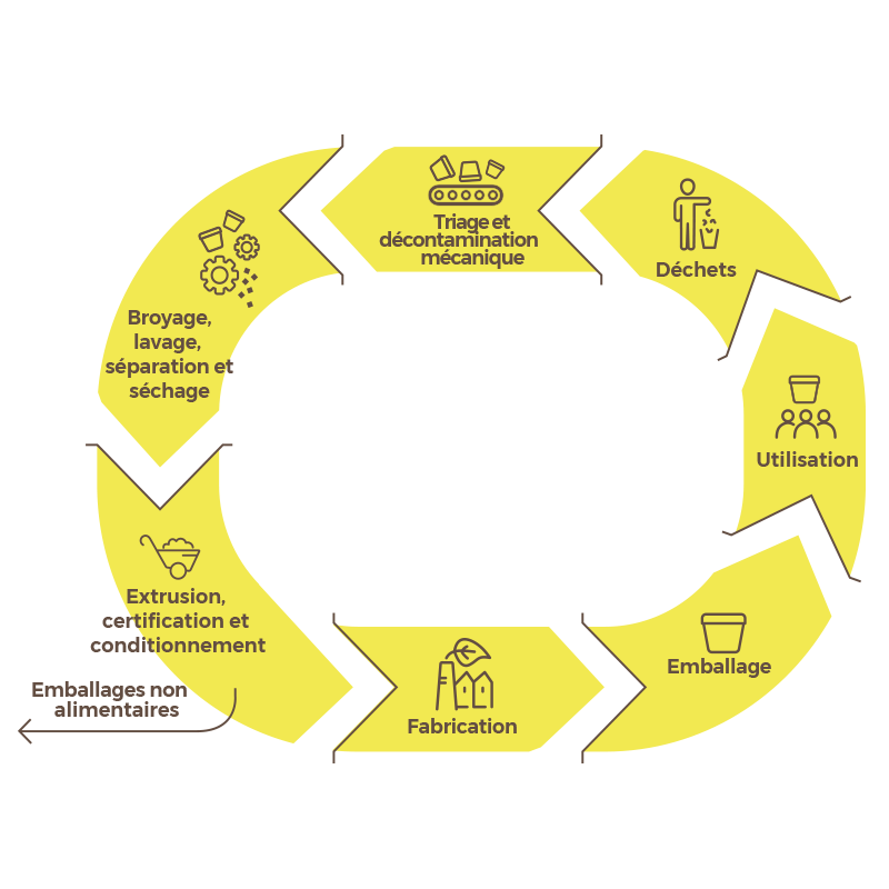 Le polypropylène issu du recyclage mécanique a été géré par les systèmes de collecte existants et ne peut être destiné qu'au marché non alimentaire.
